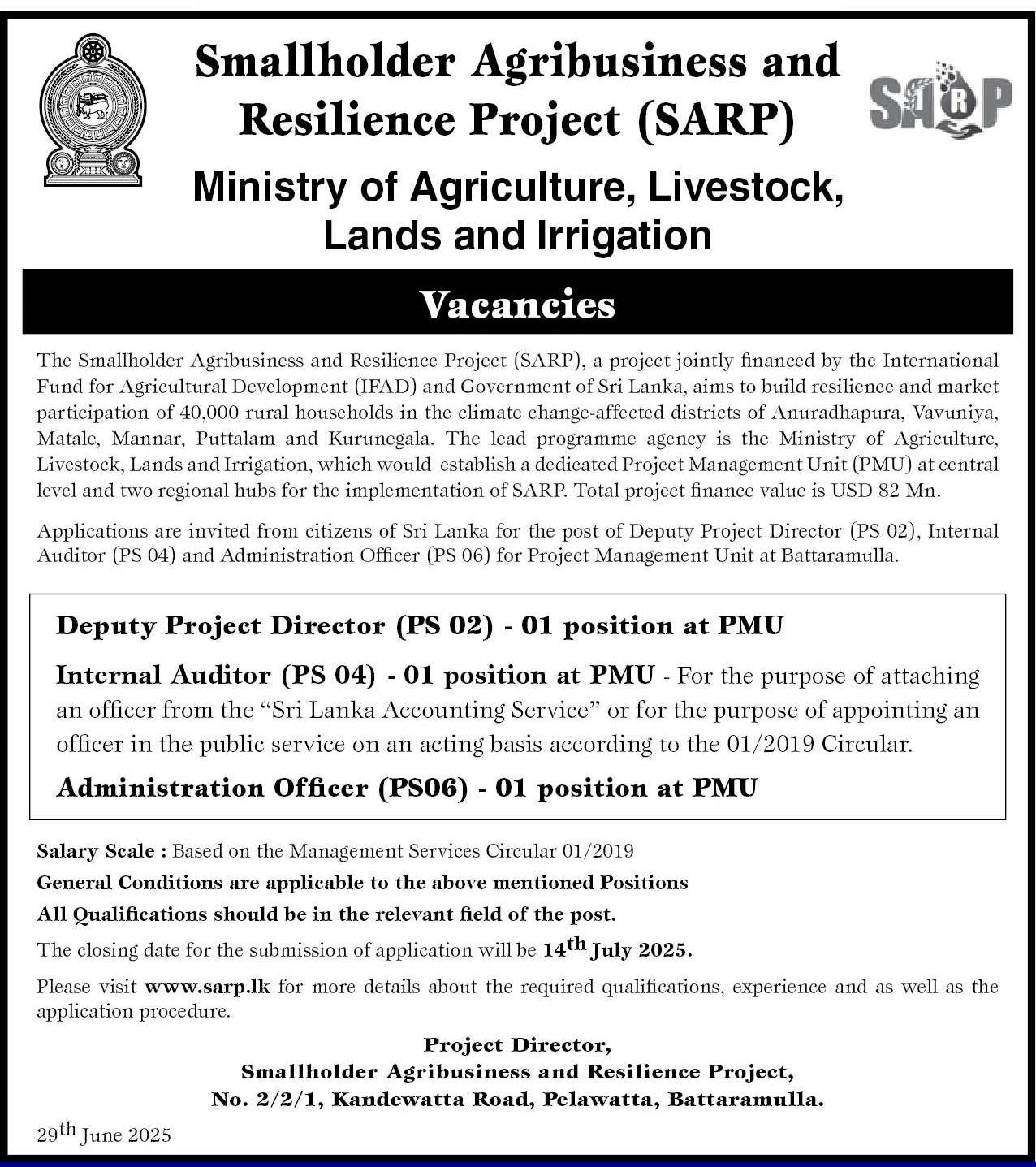 Deputy Project Director, Administrative Officer - Ministry of Agriculture