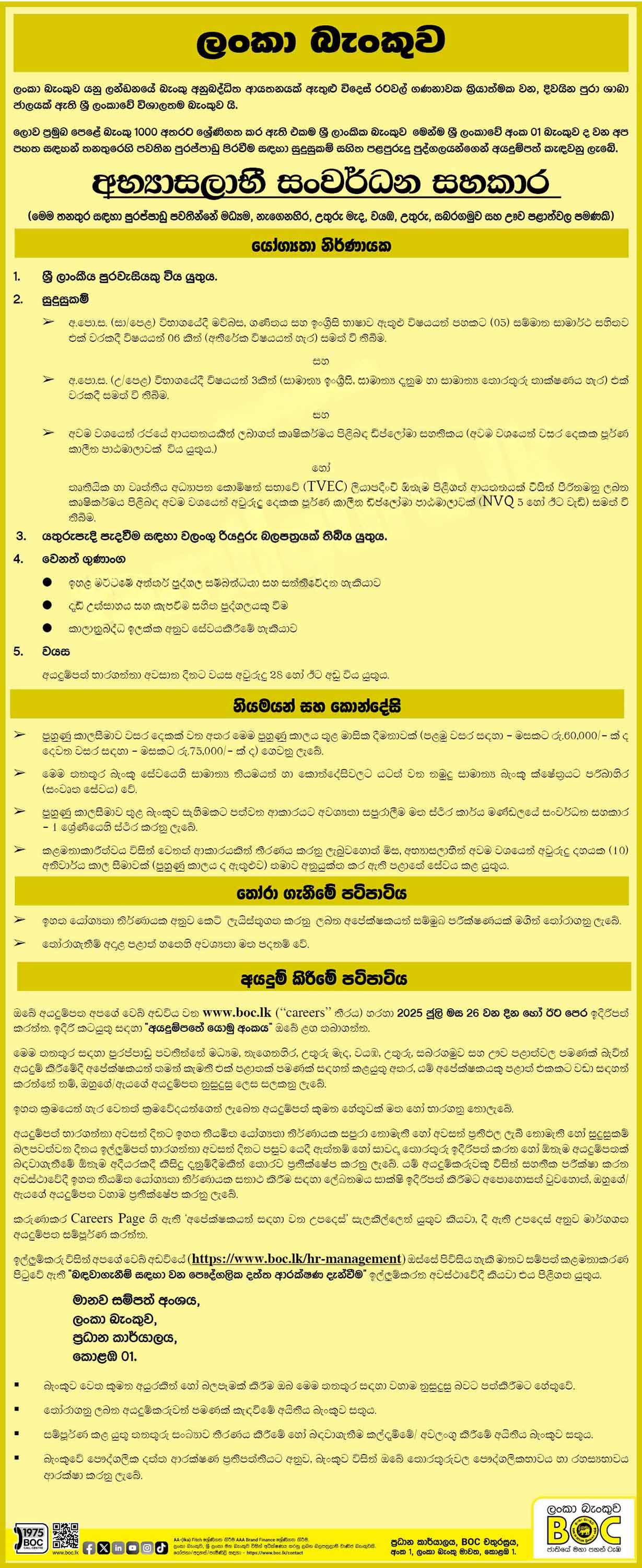 Trainee Development Assistant - Bank of Ceylon