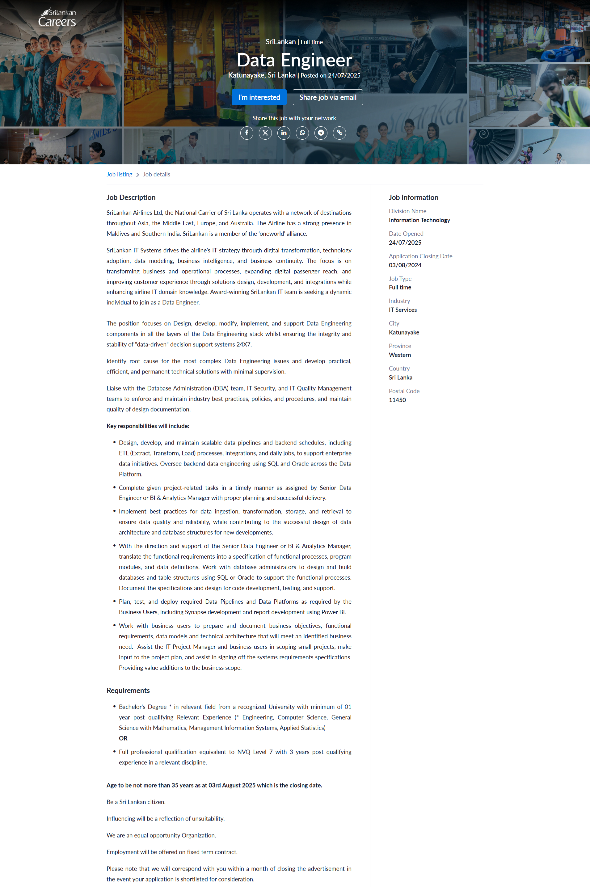 Data Engineer - SriLankan Airlines
