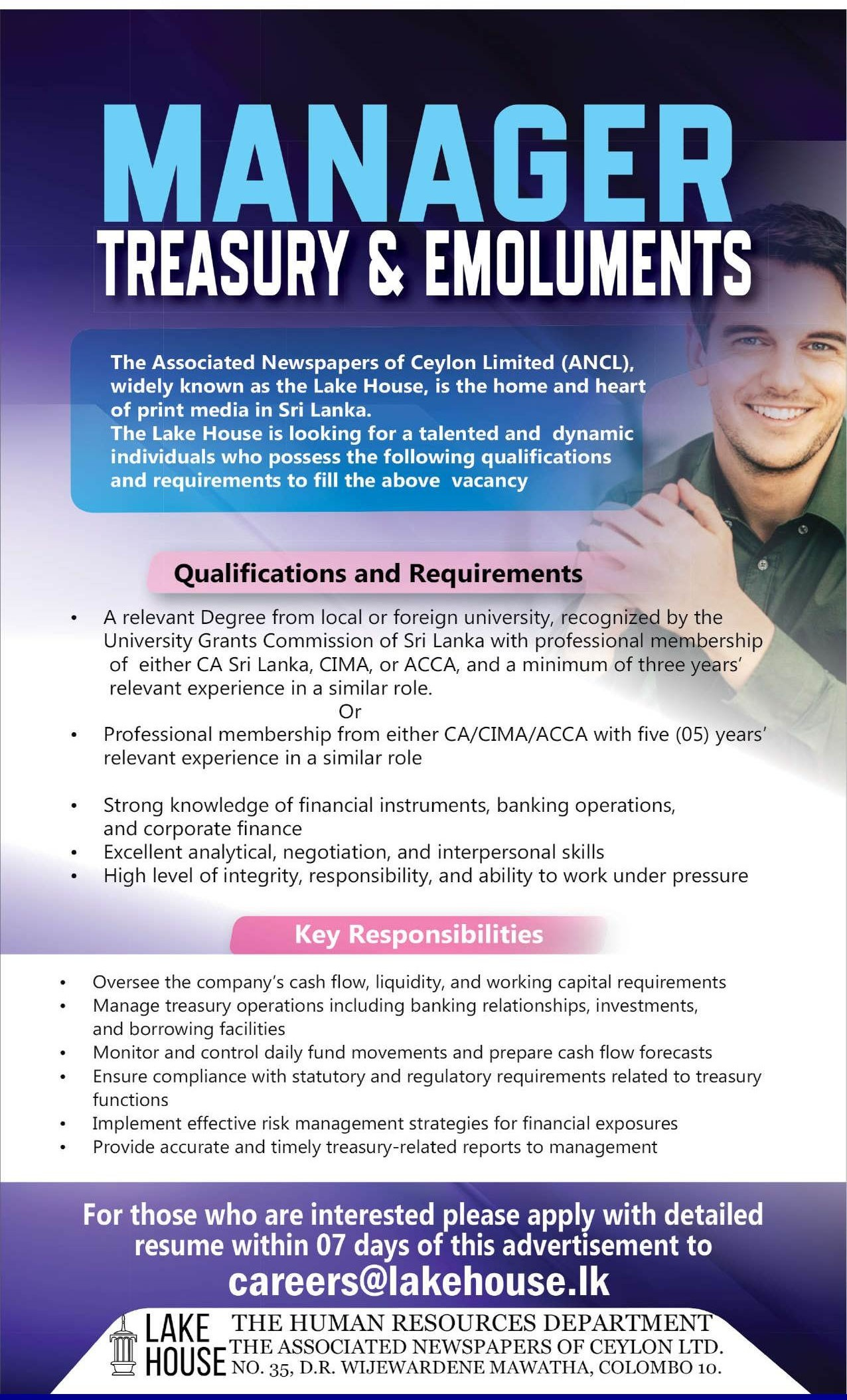 Manager Treasury & Emoluments - Lake House