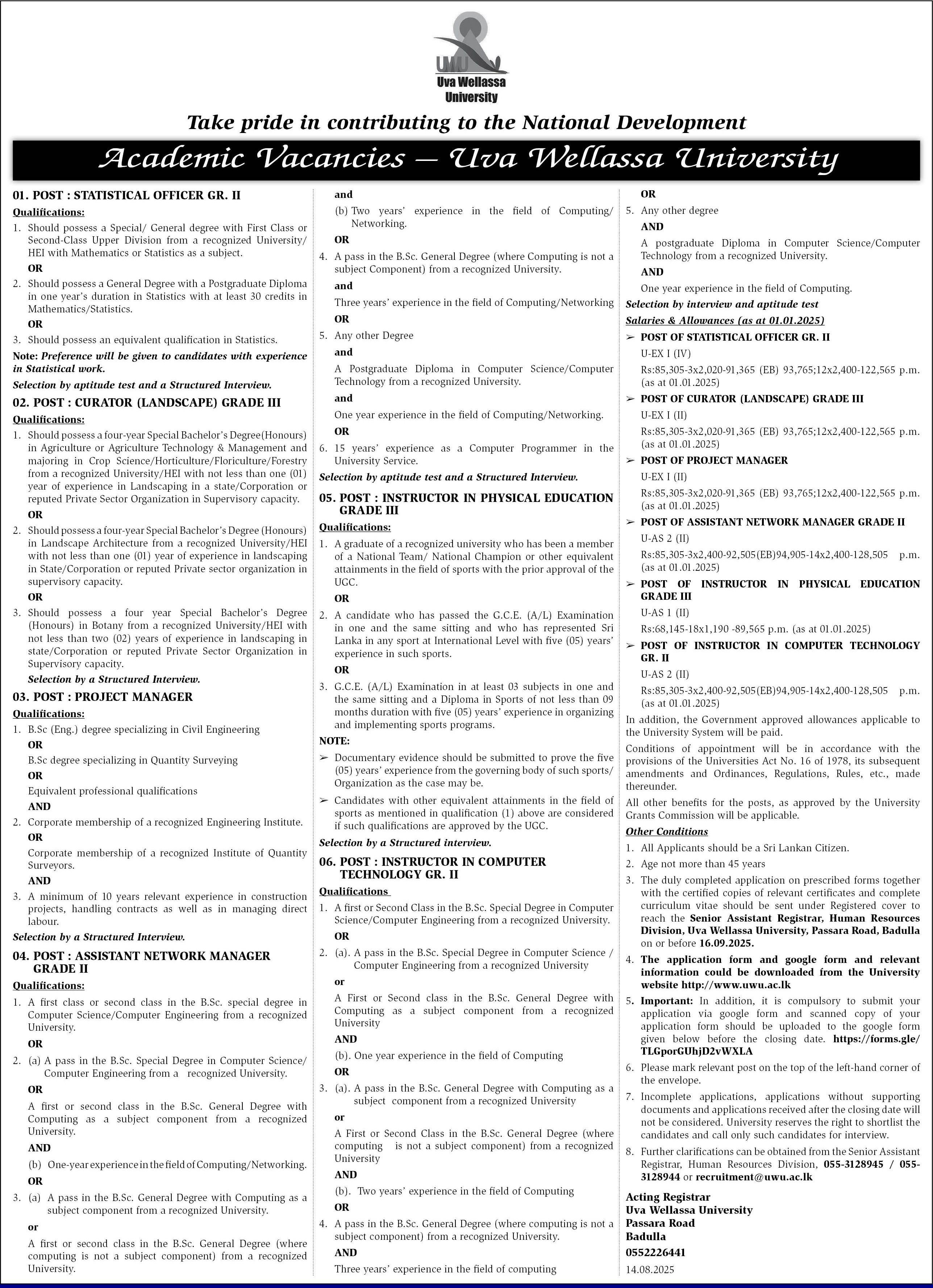Statistical Officer, Curator, Project Manager - Uva Wellassa University