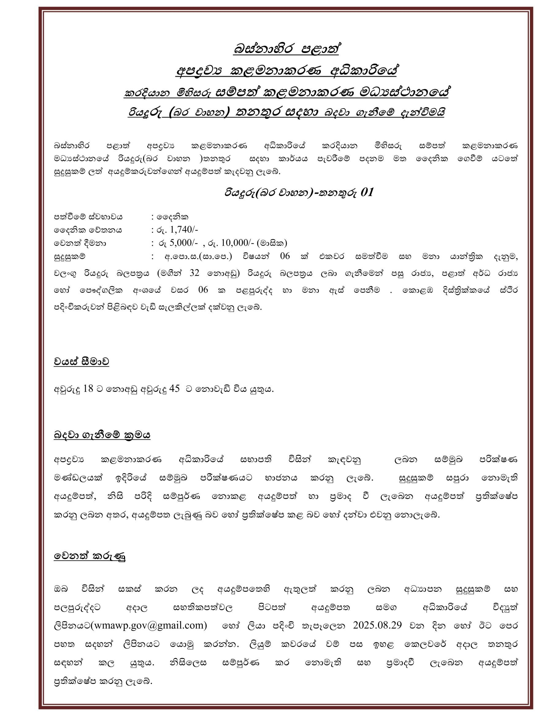 Heavy Vehicle Driver - Waste Management Authority (Western Province)