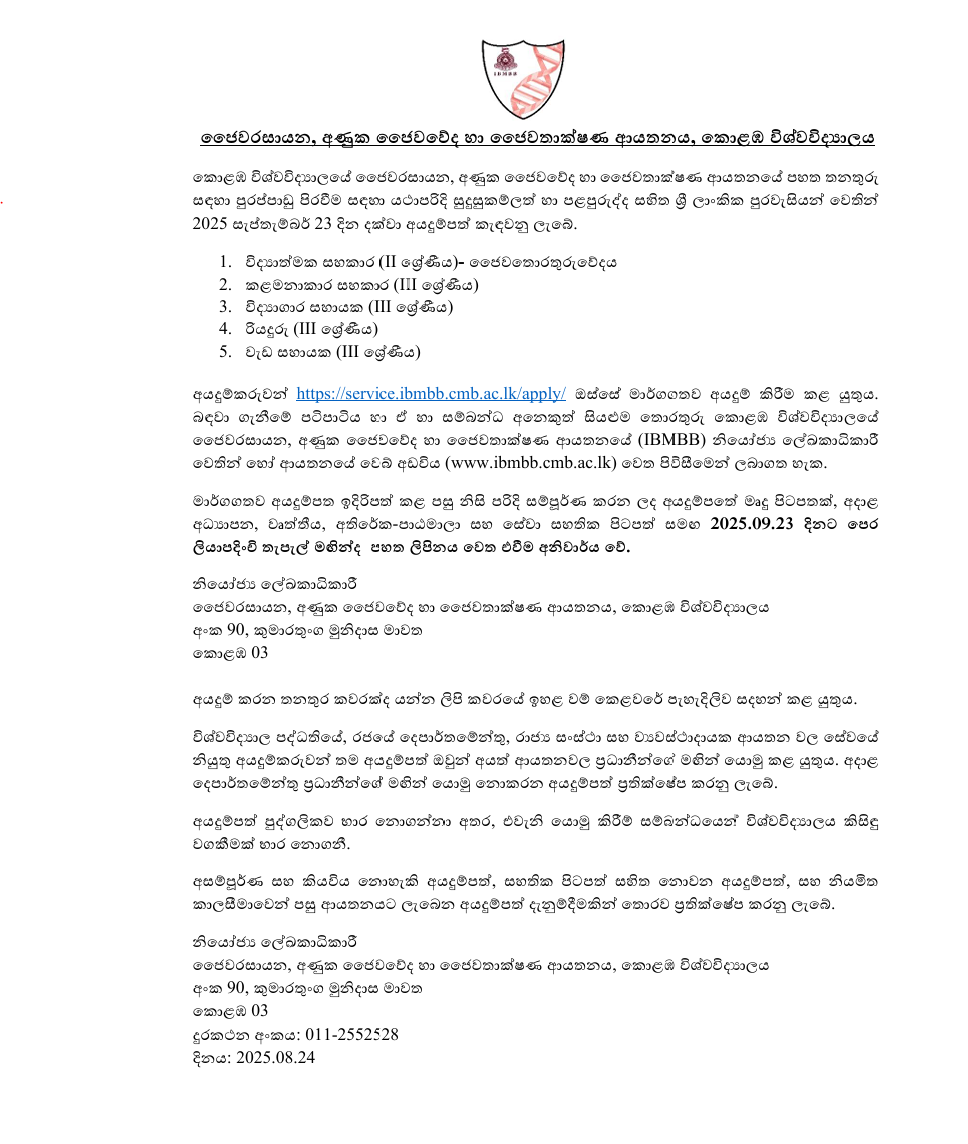 Scientific Assistant, Management Assistant, Laboratory Attendant - Institute of Biochemistry, Molecular Biology & Biotechnology