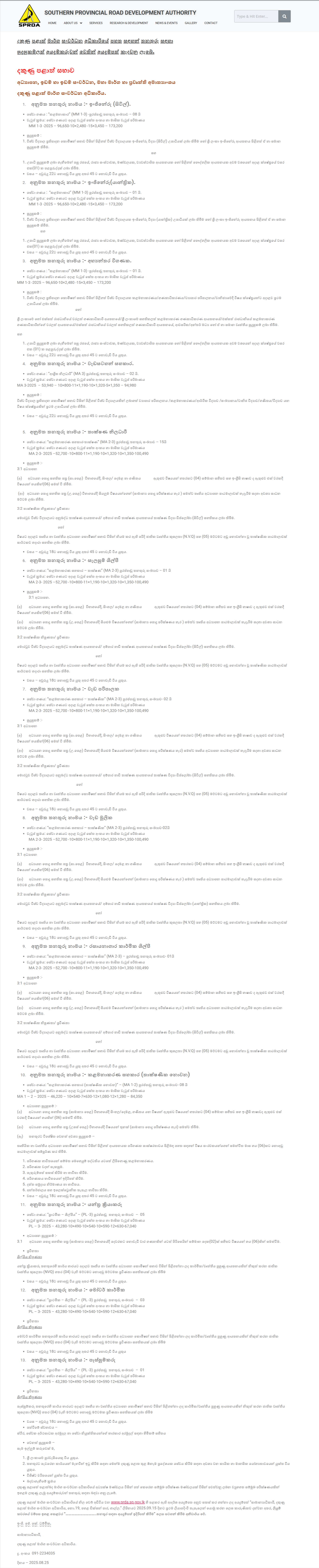 Engineer, Internal Auditor, Management Assistant - Southern Provincial Road Development Authority