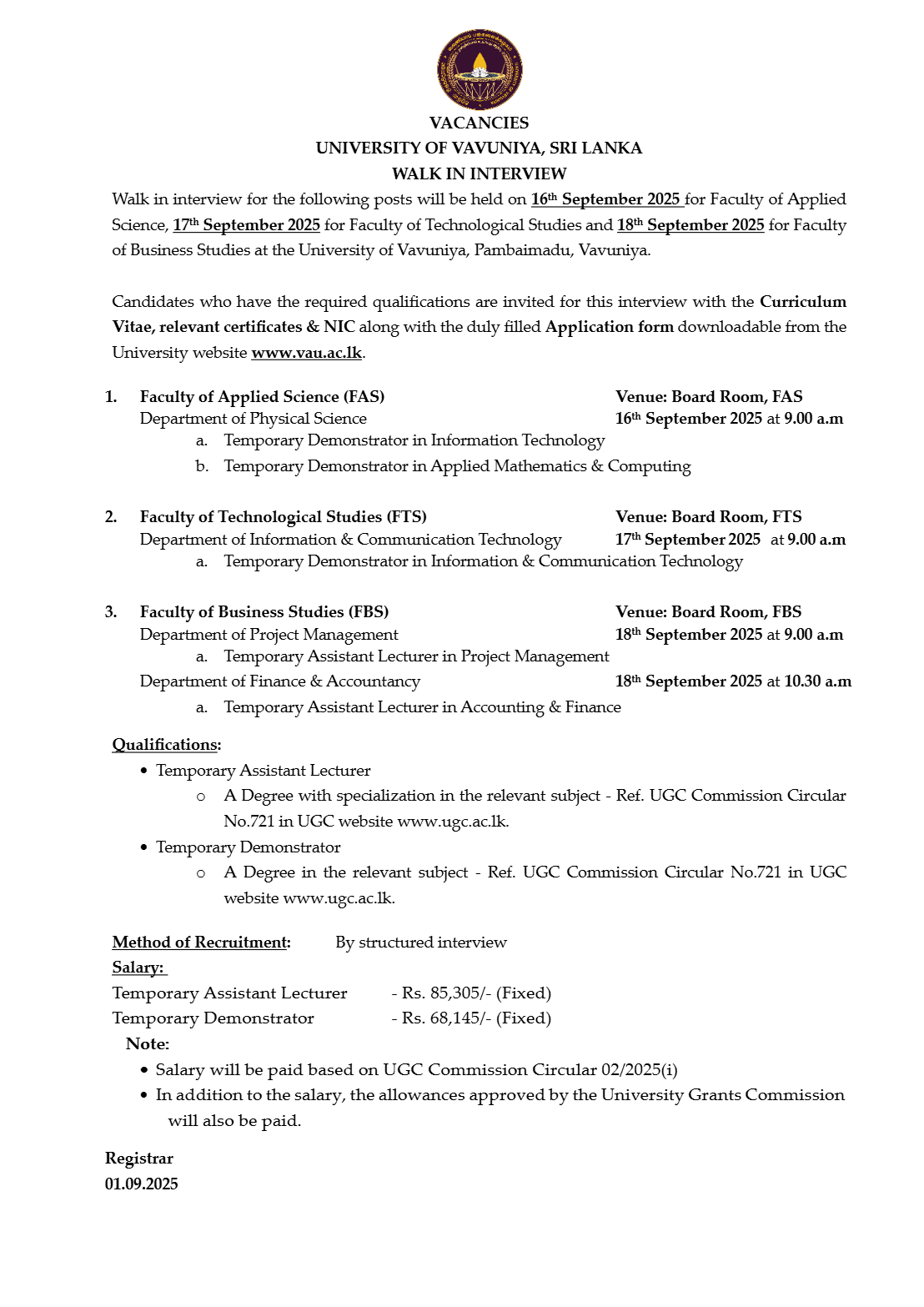 Assistant Lecturer, Demonstrator - University of Vavuniya
