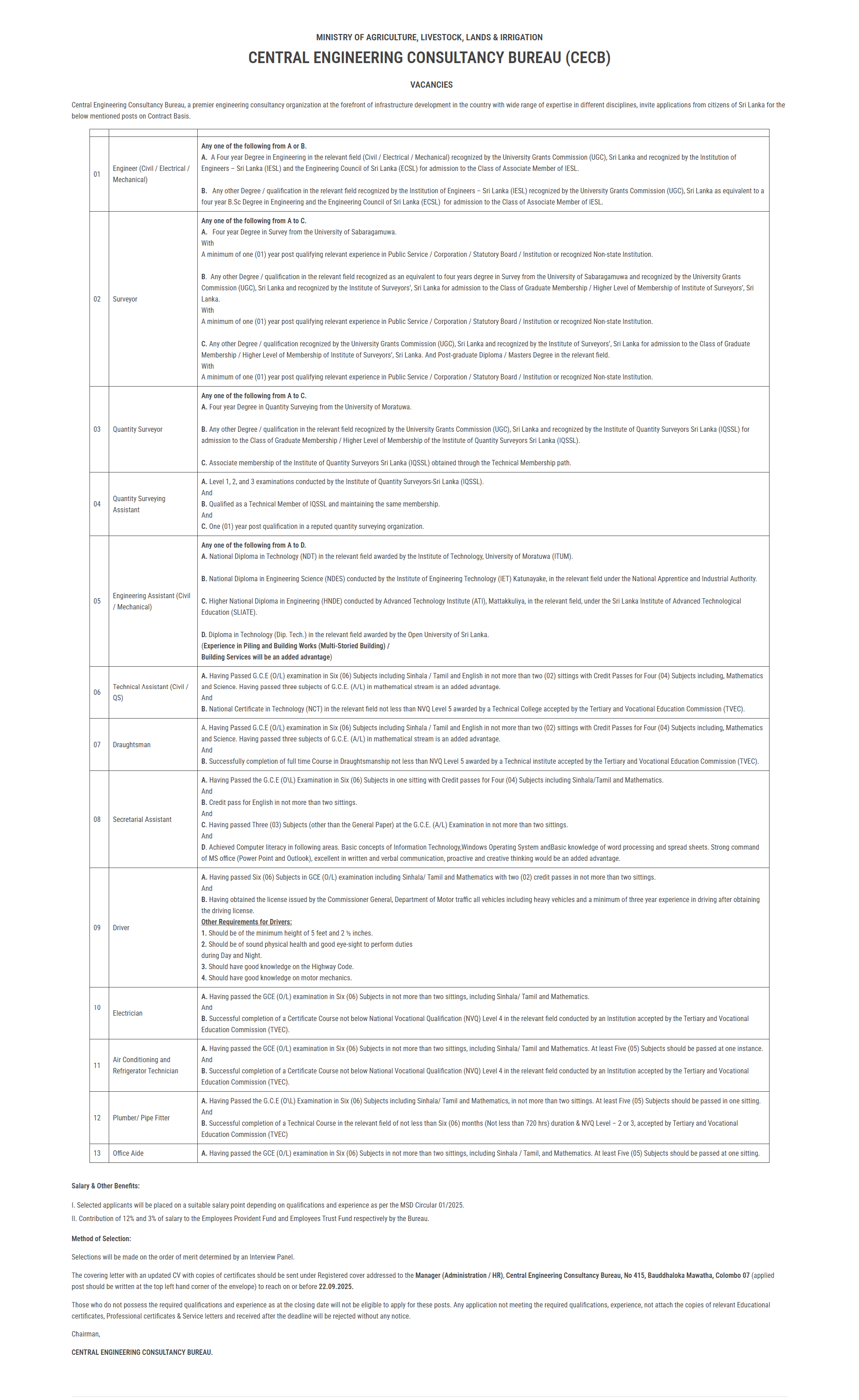 Engineer, Surveyor, Quantity Surveyor - Central Engineering Consultancy Bureau