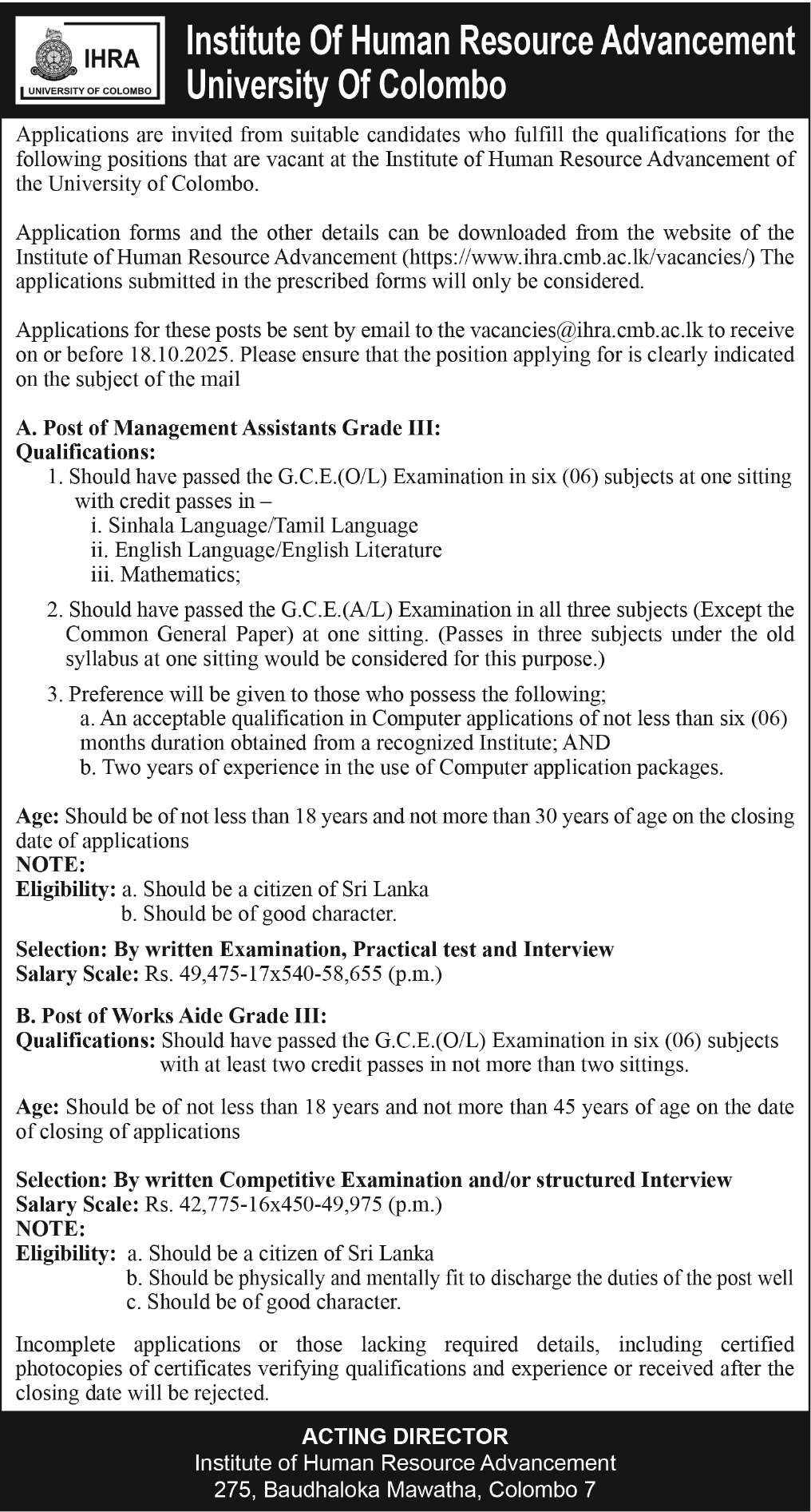 Institute Job Vacancies