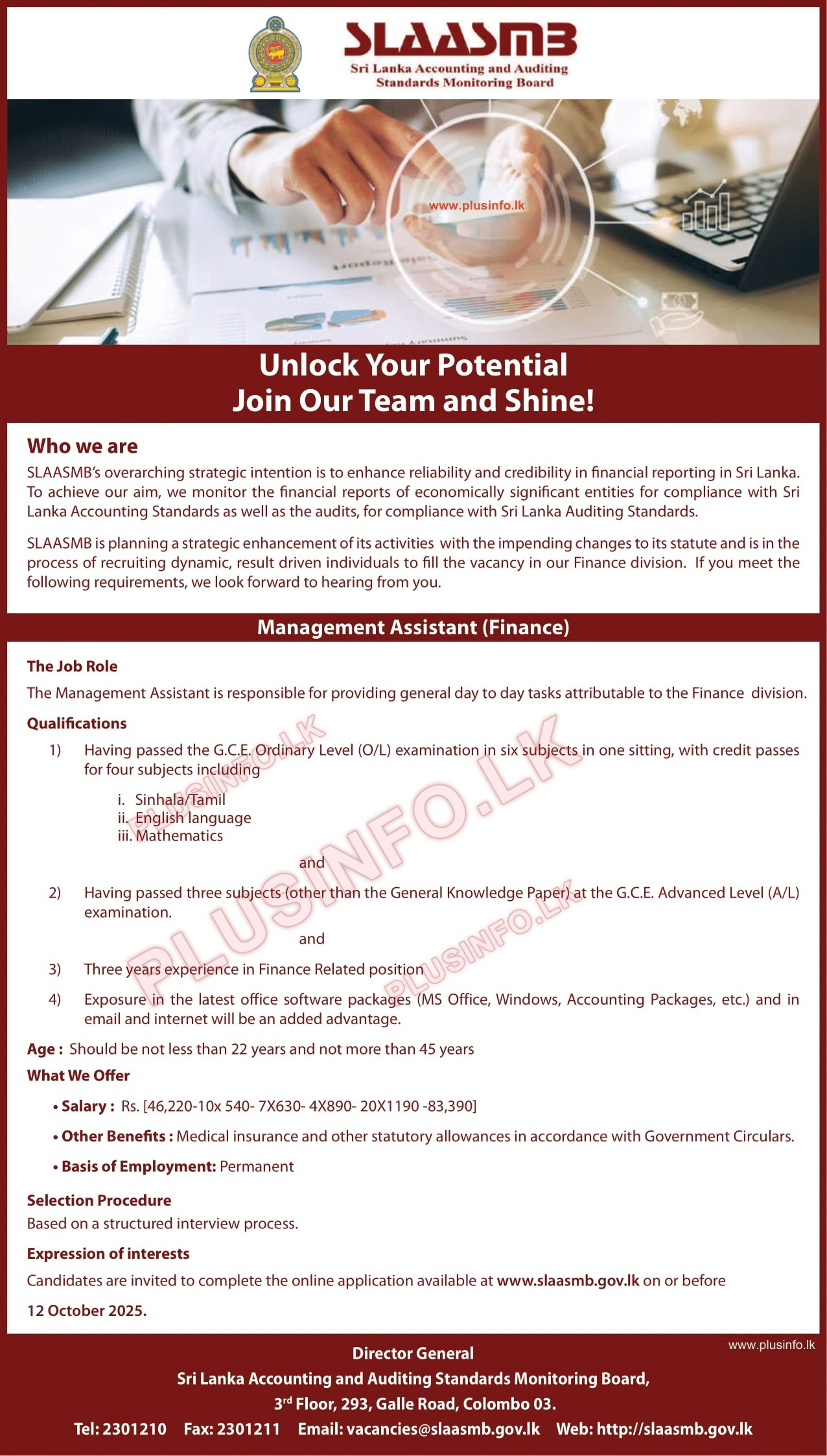 Management Assistant - Sri Lanka Accounting and Auditing Standards Monitoring Board