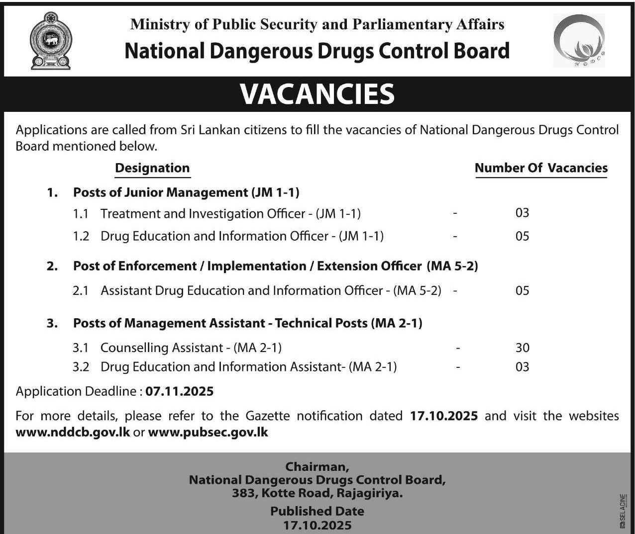 Treatment and Investigation Officer, Counselling Assistant - National Dangerous Drugs Control Board