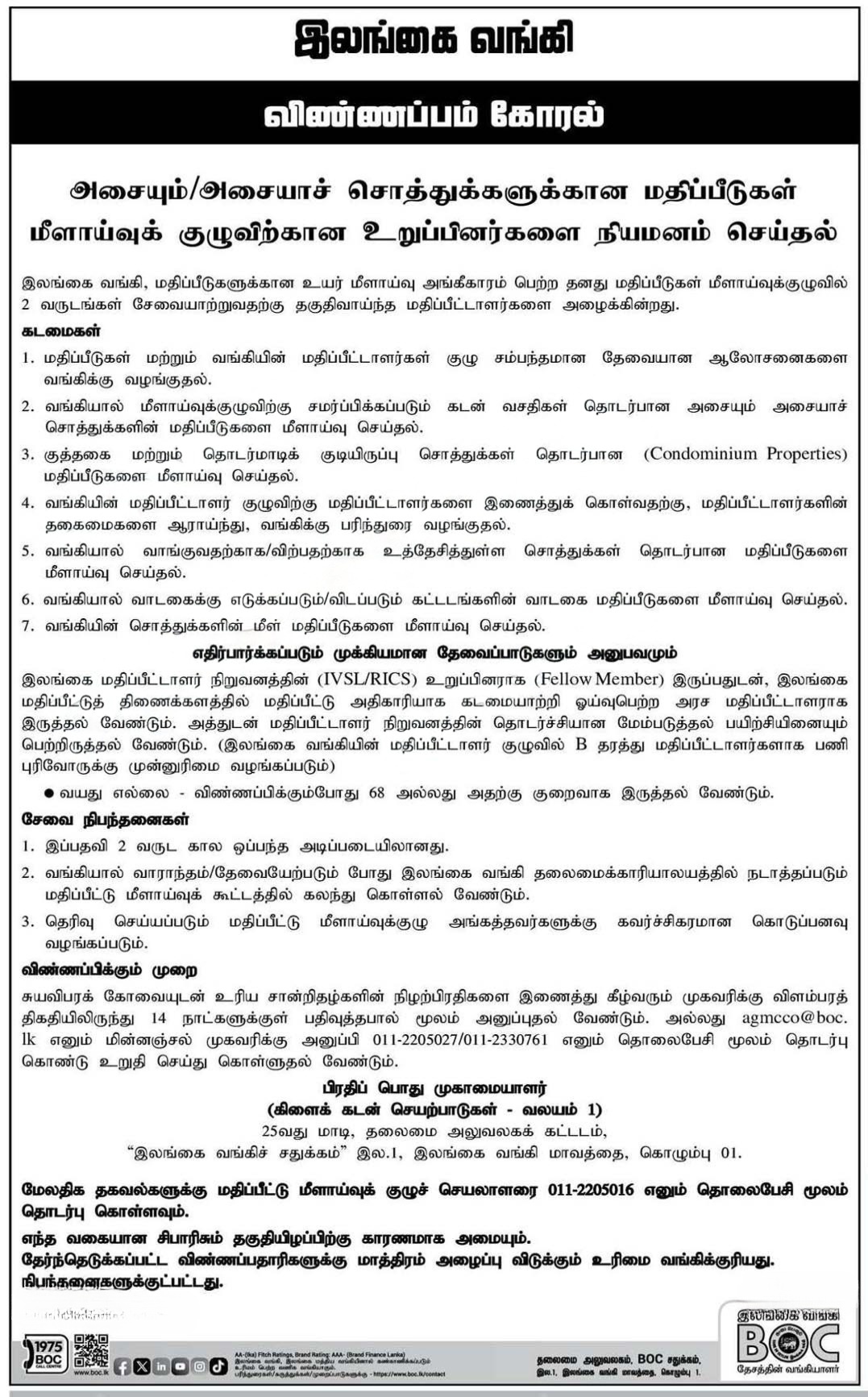 Valuation Review Panel Member - Bank of Ceylon