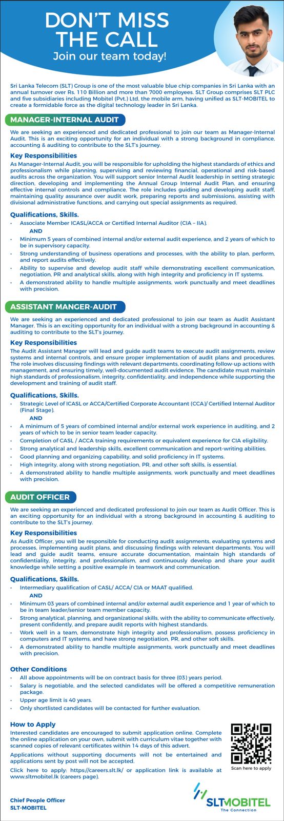 Manager, Assistant Manager, Audit Officer - Sri Lanka Telecom